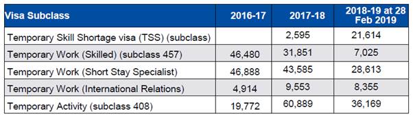 임시 기술직 비자 (457, TSS 등) 의 급감