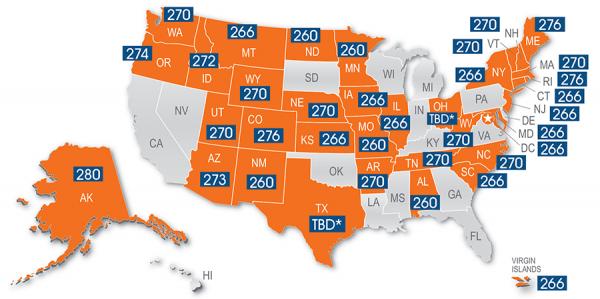 와우, 뉴멕시코, North Dakota, 미네소타, 미쥬리, 알라바마 주가 가능한것 아닙니까? UBE 260점으로!