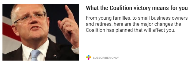 | Scott Morrison 의 coalition 이 정권 수성에 성공했다. 그래서, 이민은? (0) | 2019.05.19 |