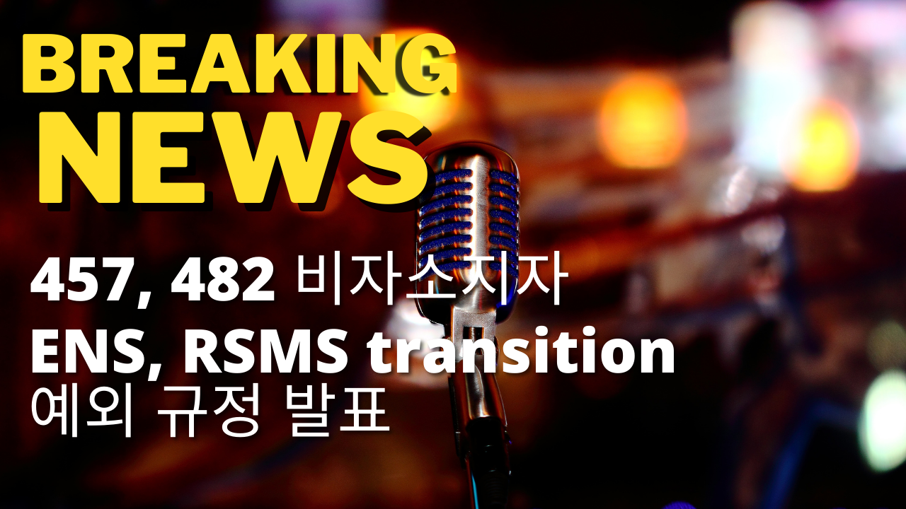 일단, 아래에 지난주에 업로드했던 457, 482 비자 소지자들을 위한 ENS, RSMS transition 예외 규정 발표에 관한 영상을 퍼옵니다. 대책이랍시고 올렸으나, 그 수준과 범위가 초라하기 짝이 없는 현실에 개탄을 금치 못할 정도입니다만, 어쩝니까? 법은 따르라고 있는거니 말입니다.